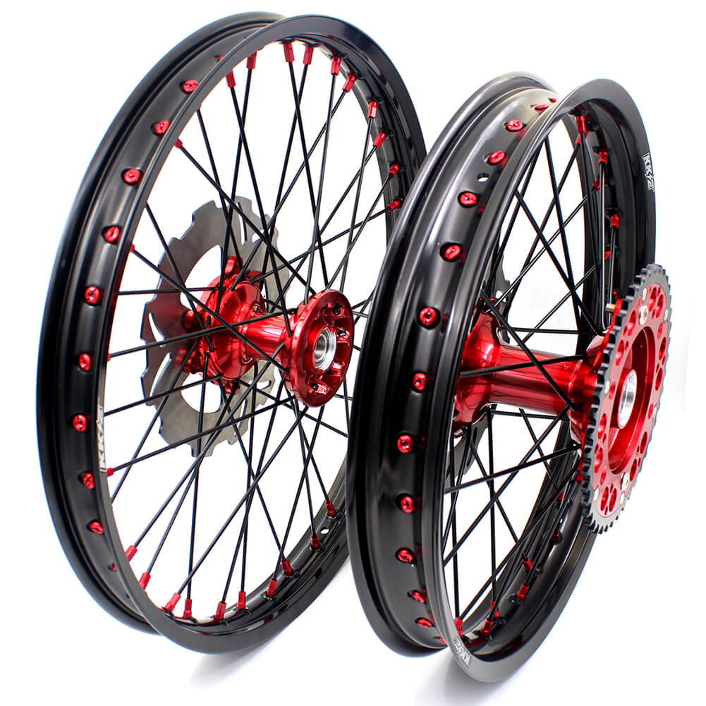 KKE 21 & 19 Casting MX Wheels for Honda CR125R 1998-2001 CR250R 1997 Red Black Disc