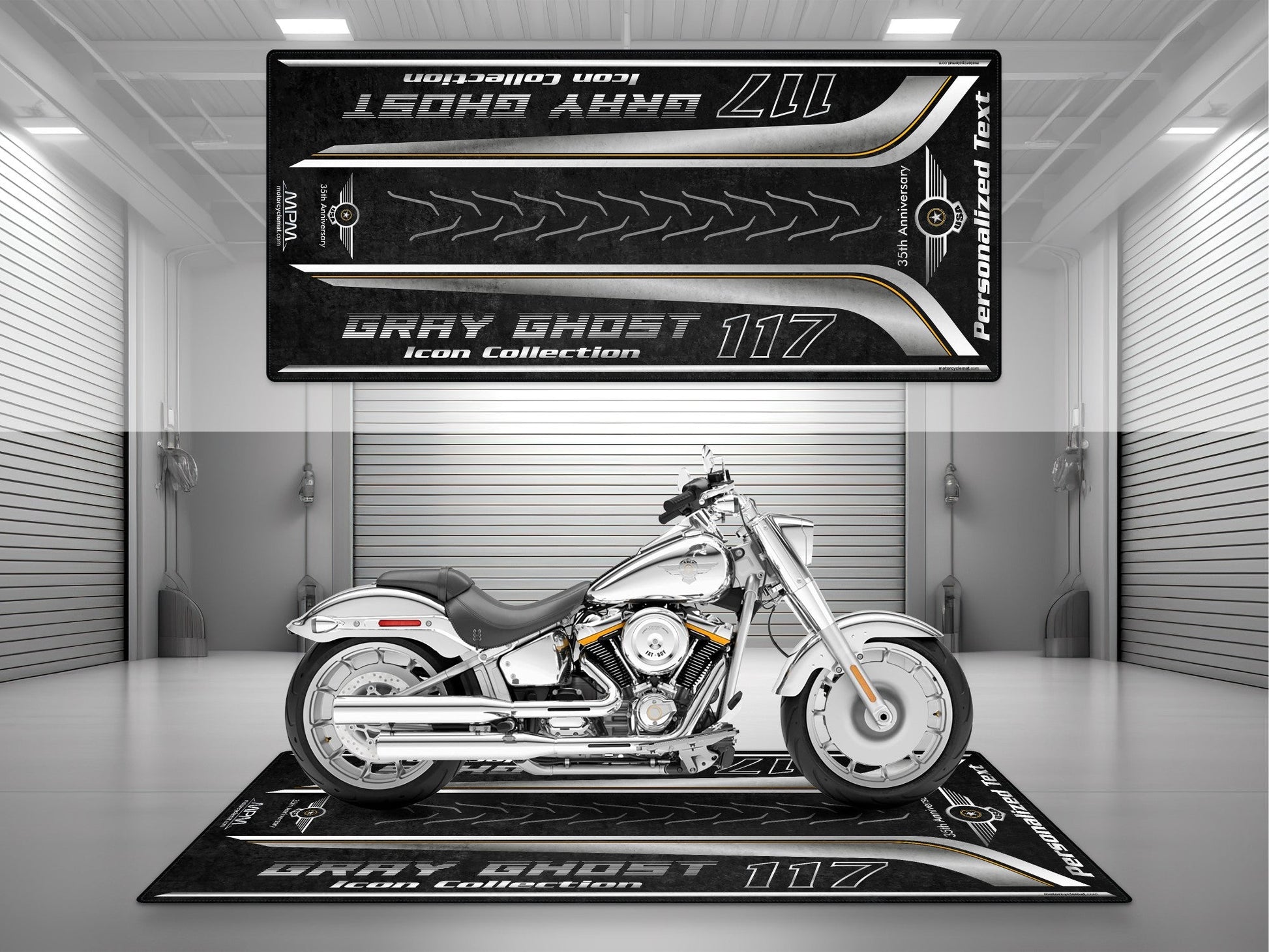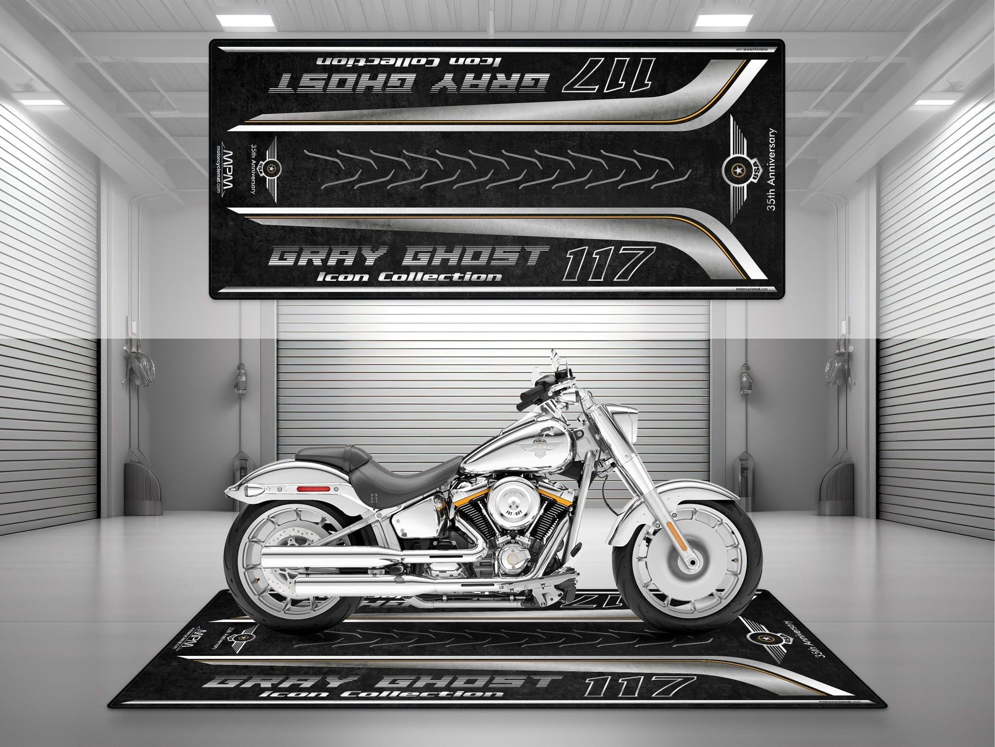MPM Motorcycle Mat for Cruiser Motorcycle "Gray Ghost Icon Collection 35th Anniversary" - MM4210
