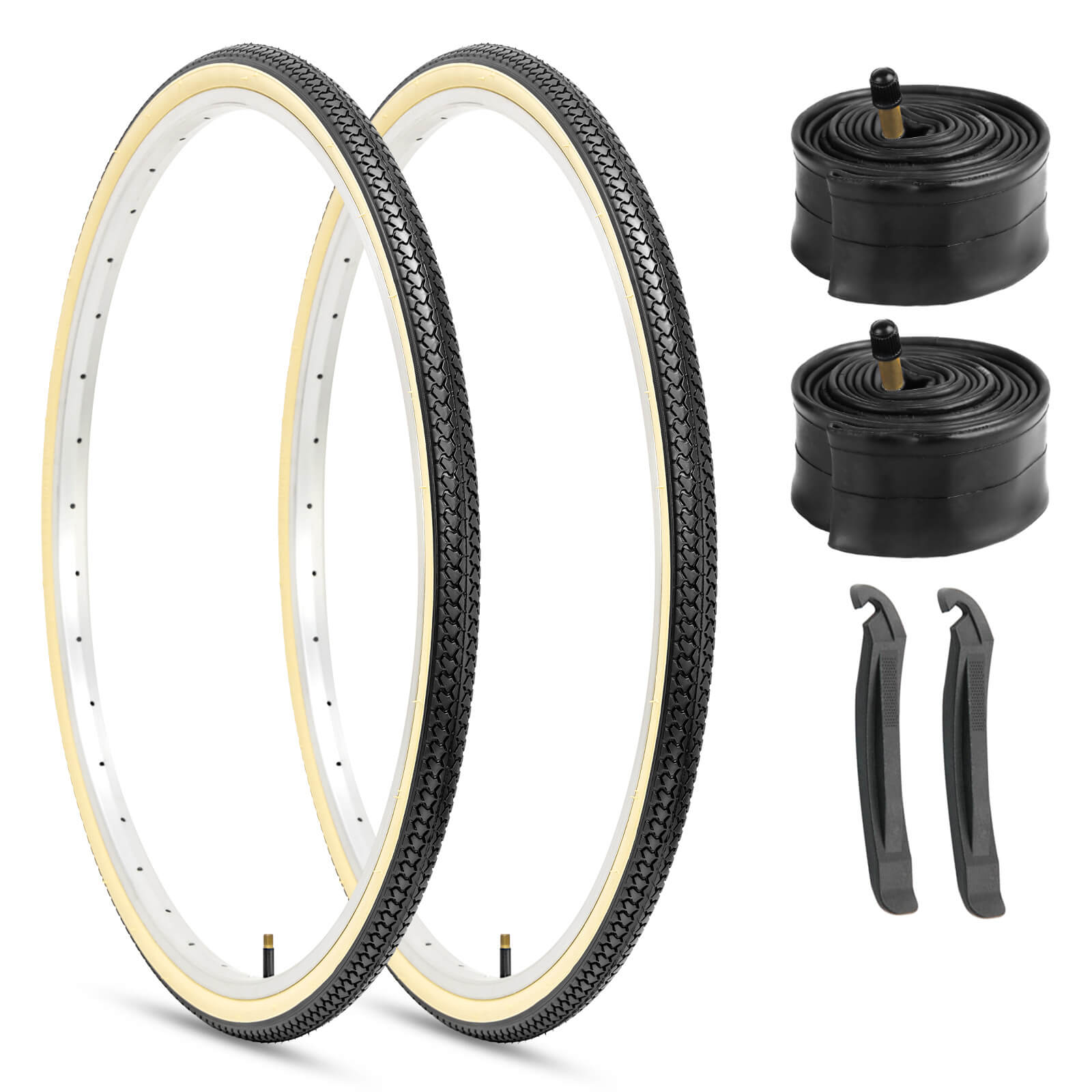| Package includes | 2 pack tires + 2 inner tubes +2 tire levers |